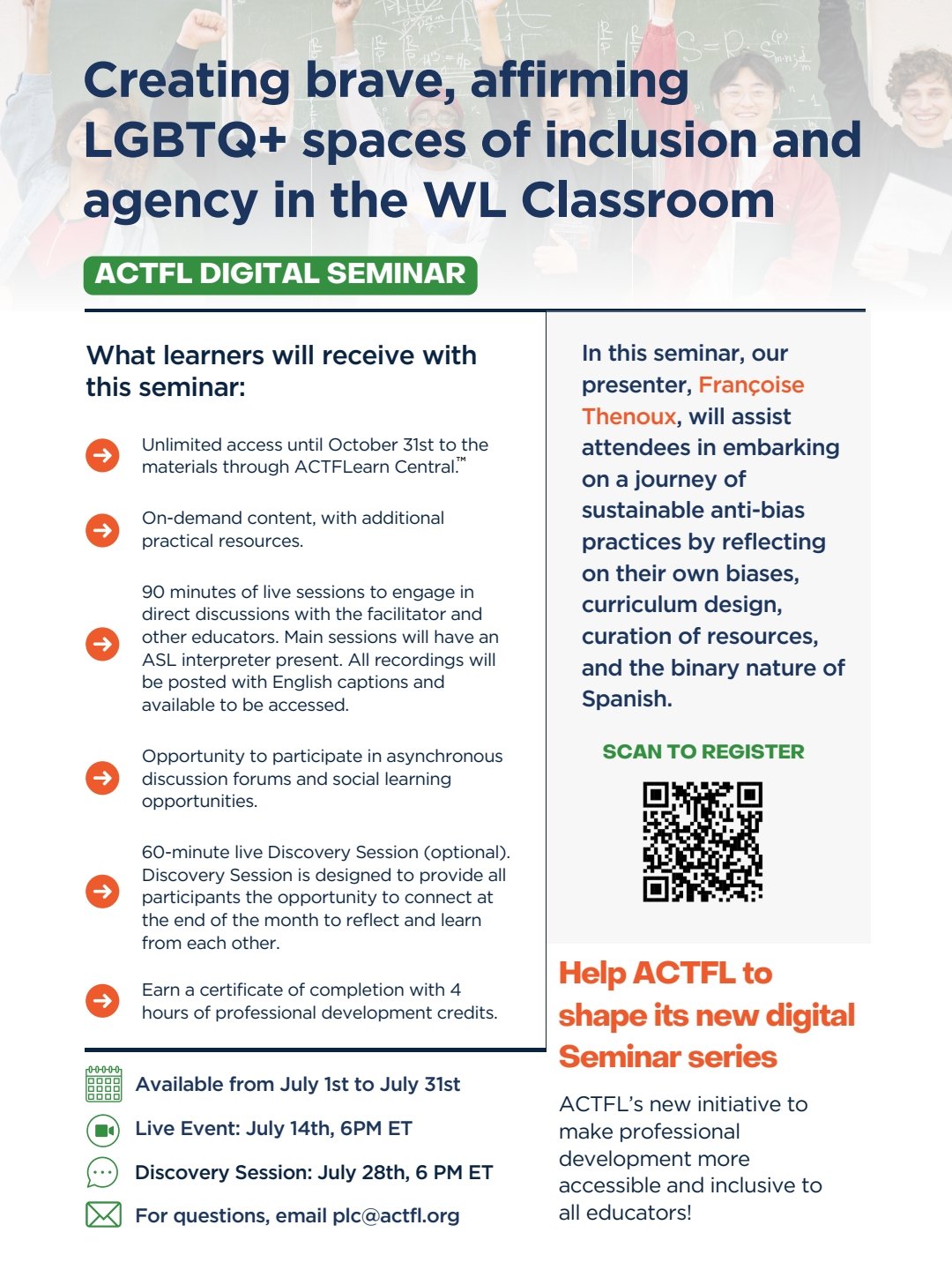 Categories Uncategorized ACTFL new summer program Post author By Malakkc Post date June 17, 2022 No Comments on ACTFL new summer program Workshops that help teachers incorporate virtual teaching strategies. Share this: linkdin Share on X (Opens in new window) X Share on LinkedIn (Opens in new window) LinkedIn Share on Pinterest (Opens in new window) Pinterest Share on Tumblr (Opens in new window) Tumblr More Share on Facebook (Opens in new window) Facebook Like Loading... Related Tags ACTFL, teachers, teaching, virtual learning, virtual workshops By Malakkc i'm a survivorof 2 civilwars, Ghana, Lebanon, all before the age of 11. The result was immigration to 3 continents as a teen, which leaves an influence upon the soul that cries out for justice. My poetry and writing reflect that and more. View Archive → ← Hubris of a City Moon → Questions … Worries …? Leave a comment Cancel reply Δ