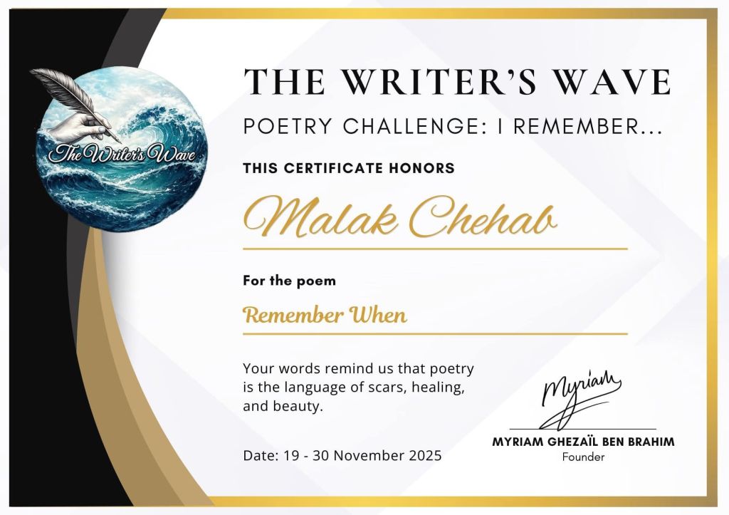 Certificate for my poem,  Remember When