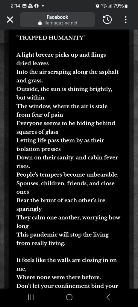 I’m deeply honored that my poem, Babe’s Phoenix, was chosen to published at ILA Magazine. Link: