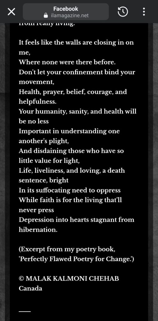 My poetry book, Perfectly Flawed poetry for change, is available on all eplatforms including Amazon. It was on the finalist list for the Canadian Book Club Awards 2023.