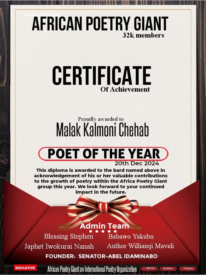I’m honored to be part of the group of poets and poetesses chosen for this honor. I love writing and connecting with my audience over the themes I write about.