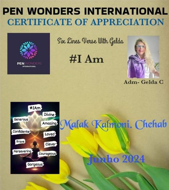 I’m continually overwhelmed with joy when I receive such an accolade. It reminds me that my words have worth, and I need to redouble my efforts to be a better writer and poet. I’m grateful for Gelda’s unwavering dedication to her work and the creative prompsts she comes up with.